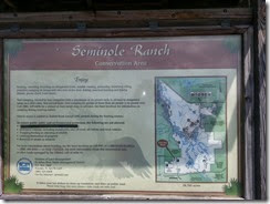 | Right across the street is the trailhead for the trails through the southern part of the Seminole Ranch conservation area. Like the sign says, hunting is allowed here, so bright clothing is recommended during hunting season.
