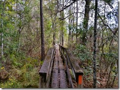 The first part of this trail heads due east and goes over a couple of small boardwalks before coming to a long narrow footbridge. The footbridge goes over a wetlands area; the water looked like it was only a couple of feet deep today.
